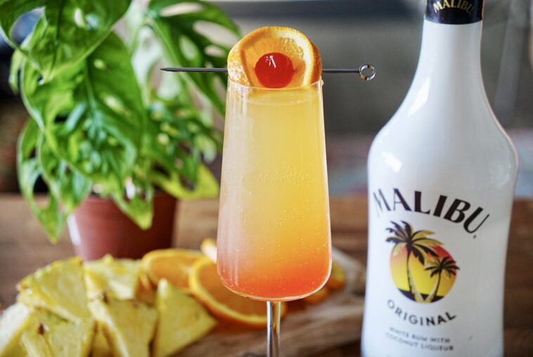 This cocktail takes the classic mimosa and gives it a tropical twist with coconut rum, pineapple, and a hint of grenadine. It still keeps that light bubbly feel, but adds a richer fruit flavor that makes it feel more fun and a bit more memorable. I love this because it feels like a small upgrade without adding a lot of extra work. If you are planning something for Mother’s Day, this is one of those cocktails that fits perfectly.
