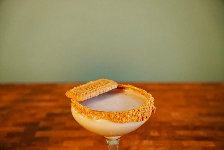 - Spread Biscoff cookie butter around the rim of your martini or coupe glass.