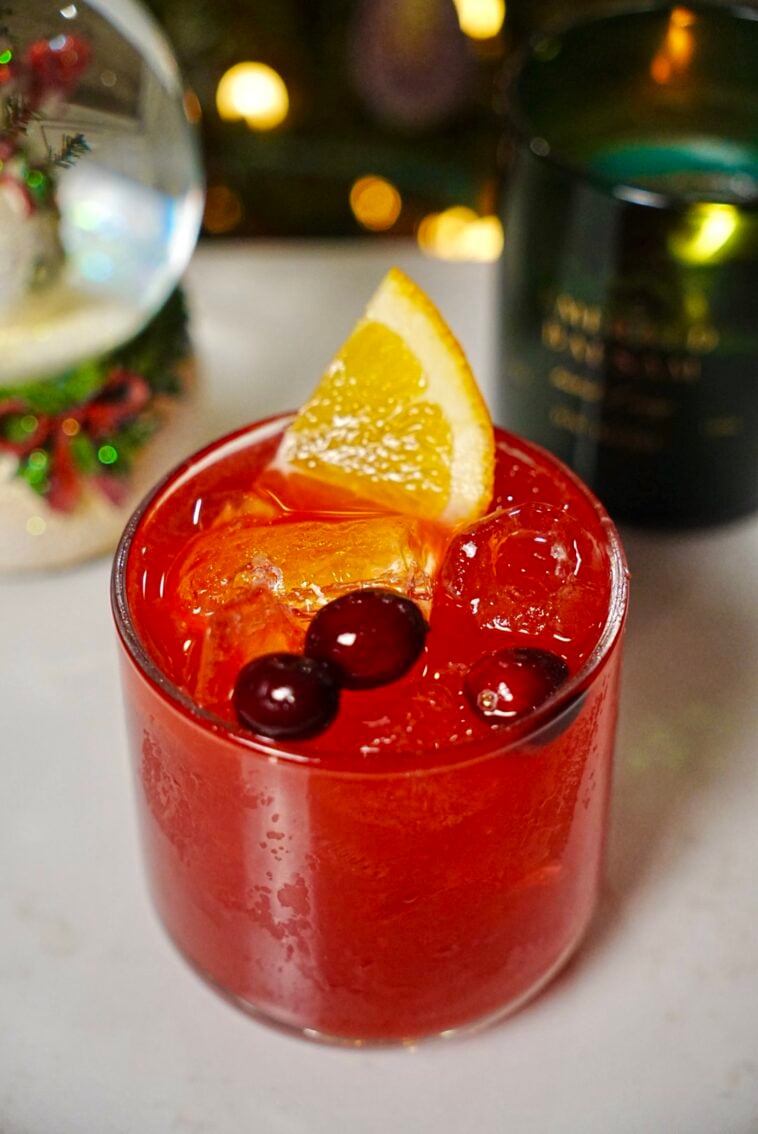 - Garnish with an orange slice and fresh cranberries.